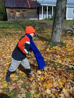 I never asked him to do this. This was totally self-motivated. He is barely making a dent in the amount on the ground, but he loves doing it & loves to work. I'm very blessed by this child.